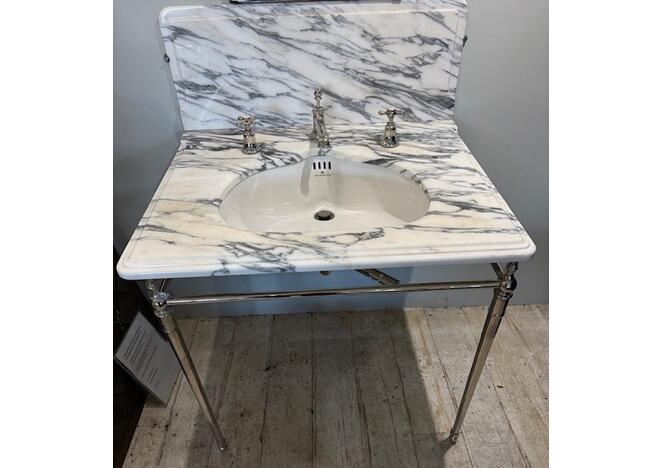 Complete with marble top and splash back, the ultimate in Bathroom Luxury .