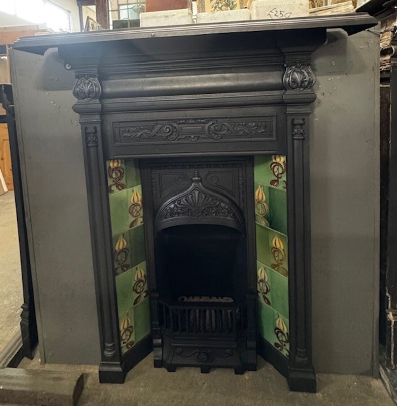 The fireplace has scroll work on the legs and center piece complemented with a intergrated fire hood with superb detailing showing the outstanding workmanship of this period