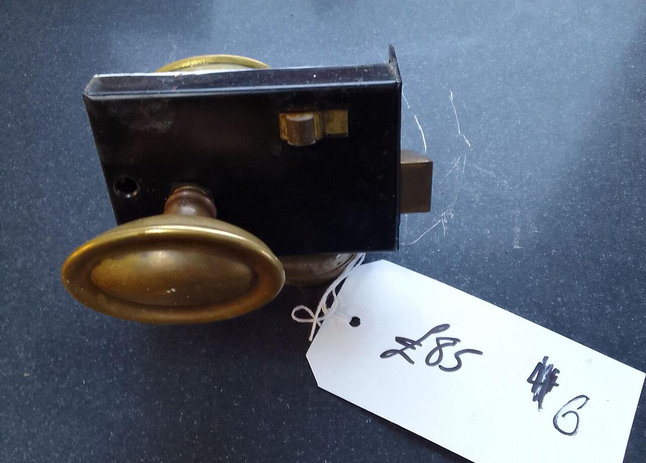 DL0601 An original period door lock with a thumb lock and set of period handles.