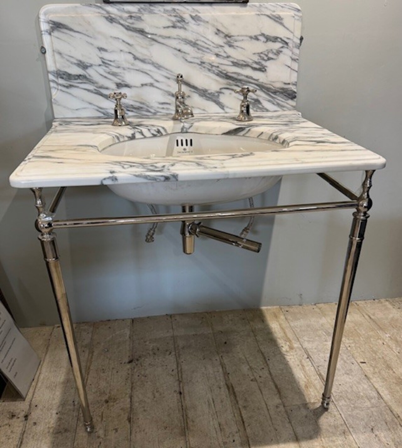 We have just reclaimed this stunning World Famous Drummonds basin and stand complete with taps .