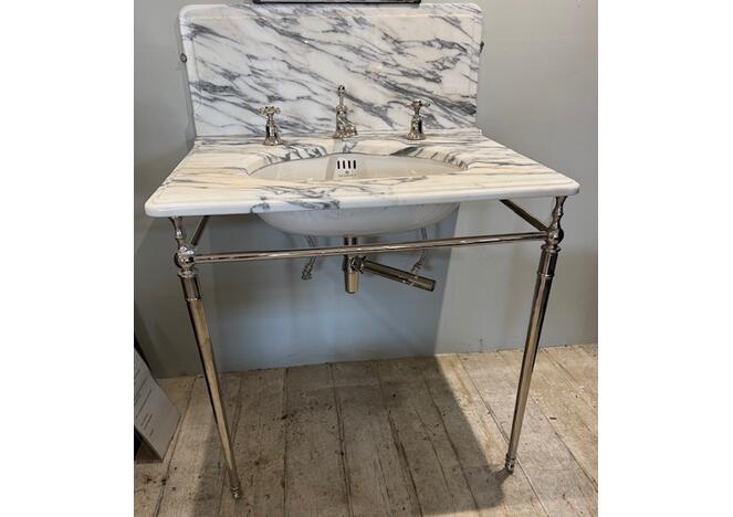 Complete with marble top and splash back, the ultimate in Bathroom Luxury .