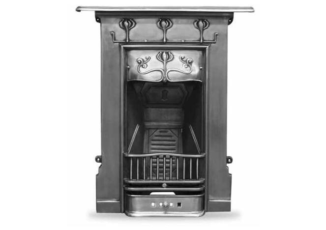 The Abbot is an Art Nouveau cast iron fireplace that combines an elegantly simplistic design with an impressively imposing presence.