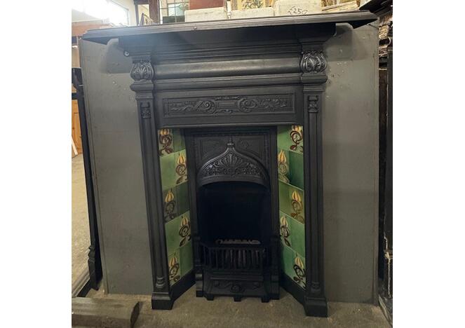The fireplace has scroll work on the legs and center piece complemented with a intergrated fire hood with superb detailing showing the outstanding workmanship of this period