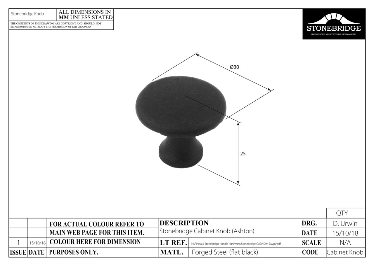 Ashton Knob 30mm Armor Coat Flat Black £9.89