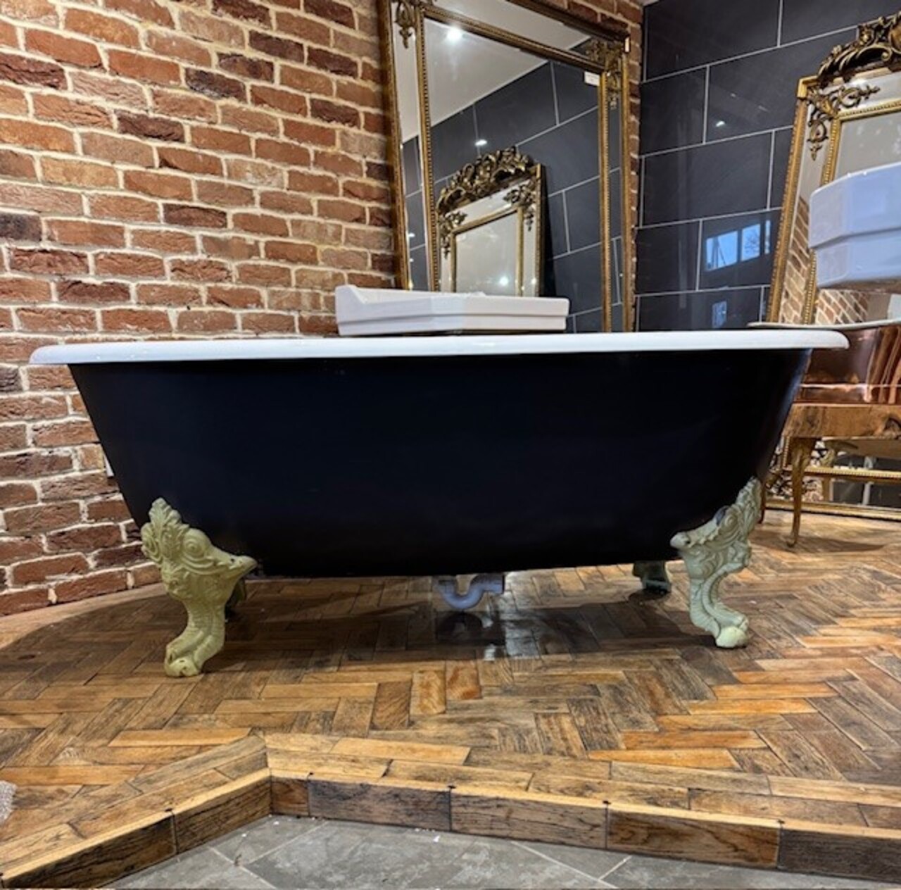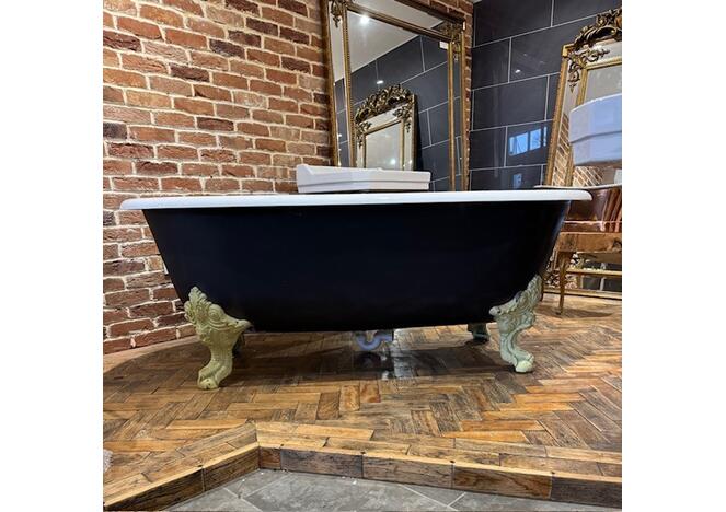 The bath has no tap holes and stunning large feet showing Neptune.