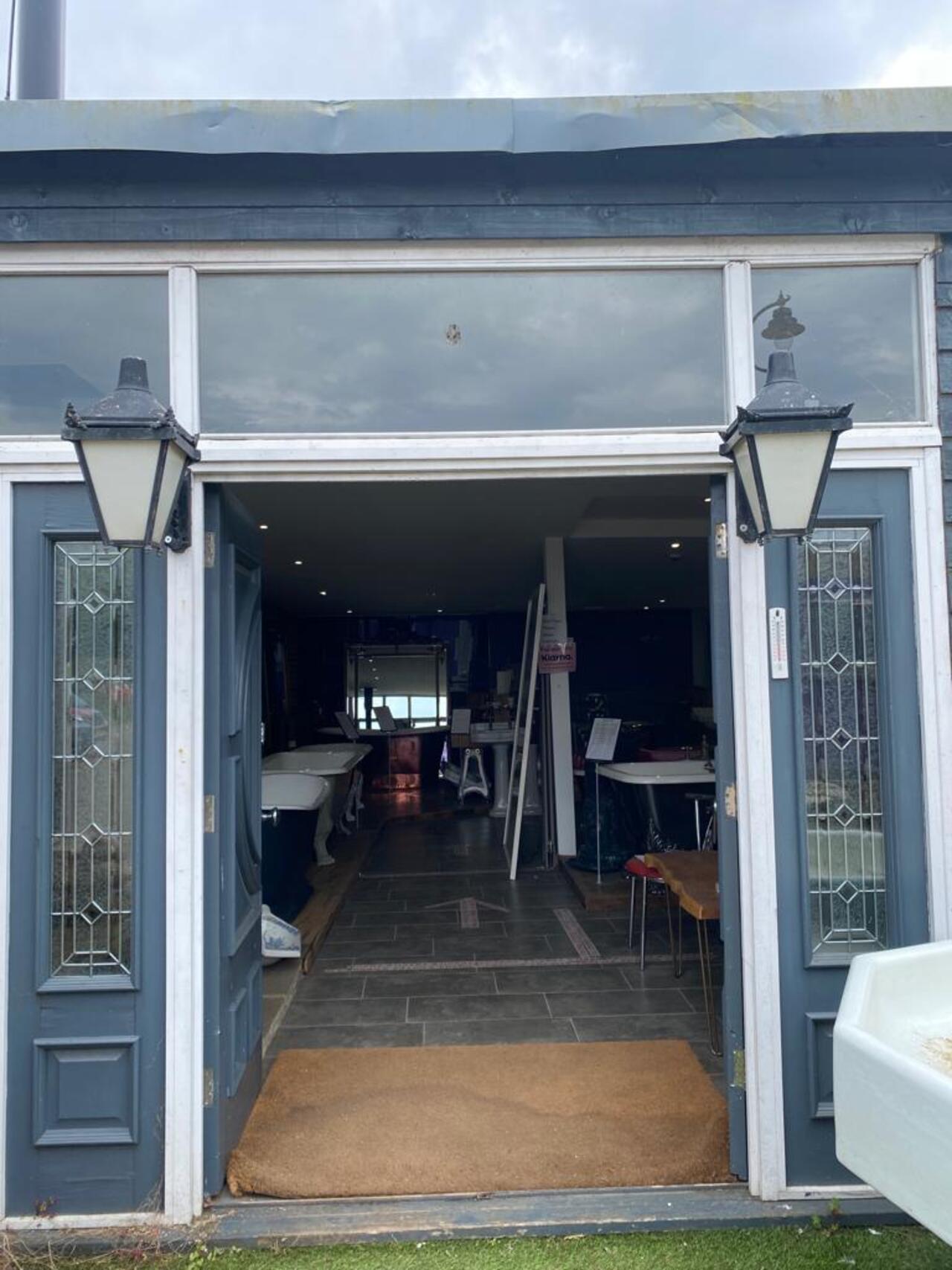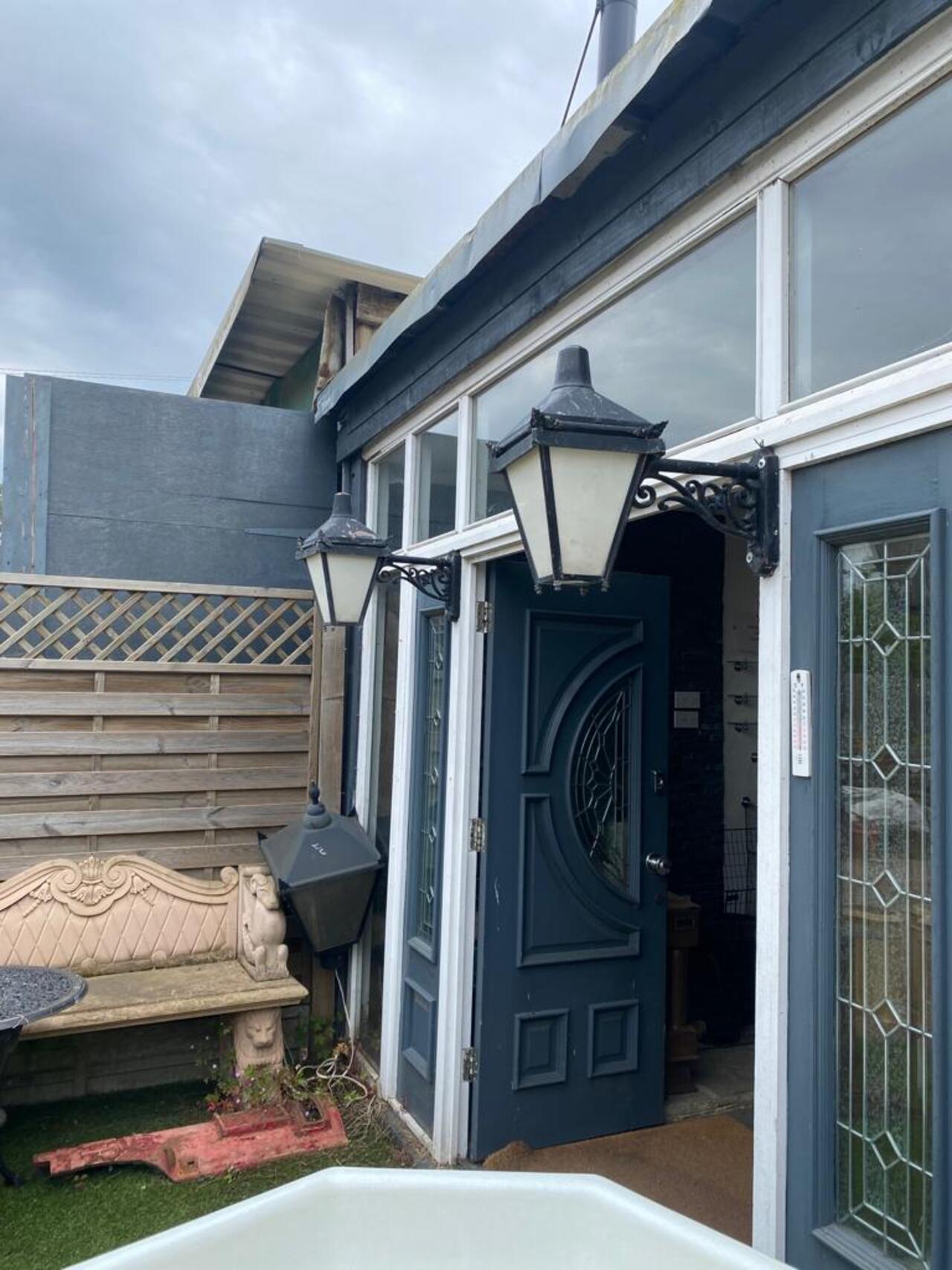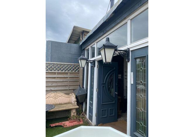 Wonderful pair of reclaimed wall lnterns and brackets. They are copper but painted