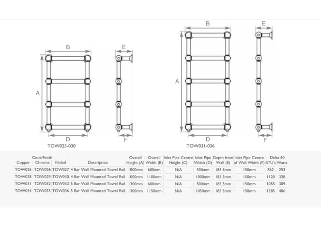 - The output of this towel rail is 1120 Btu's 328 watts (The output figures quoted are to Delta 60)