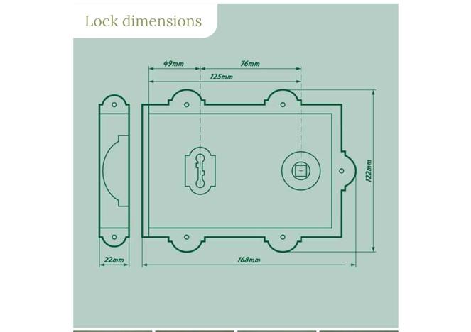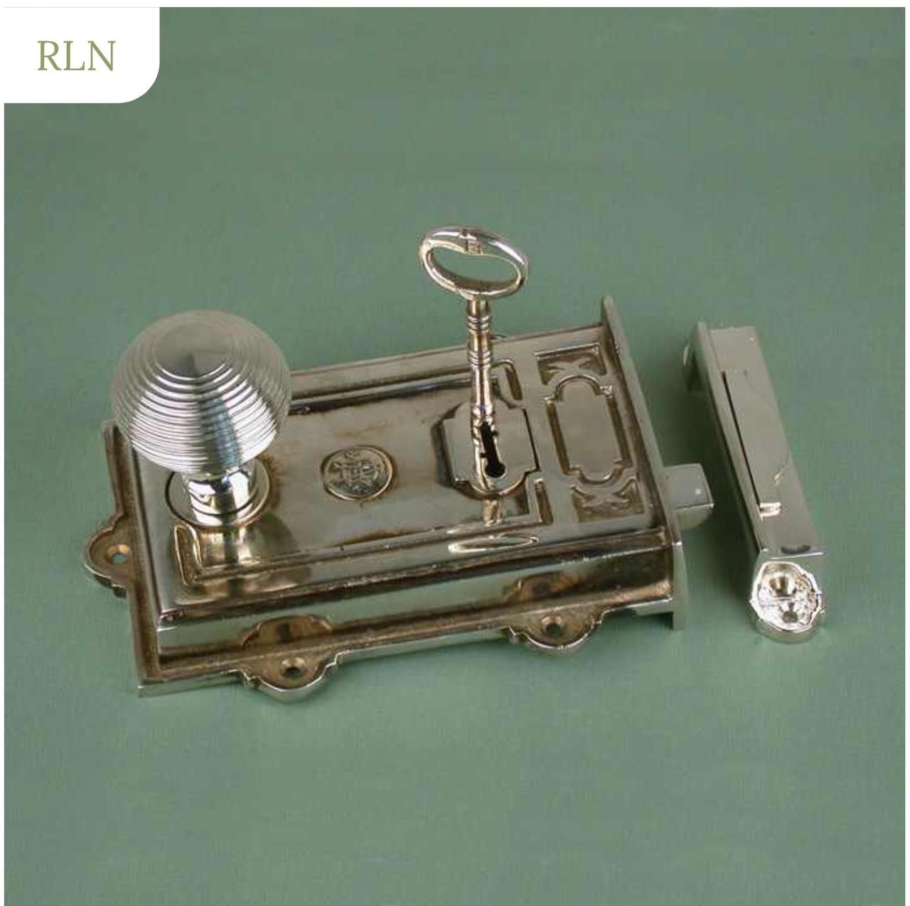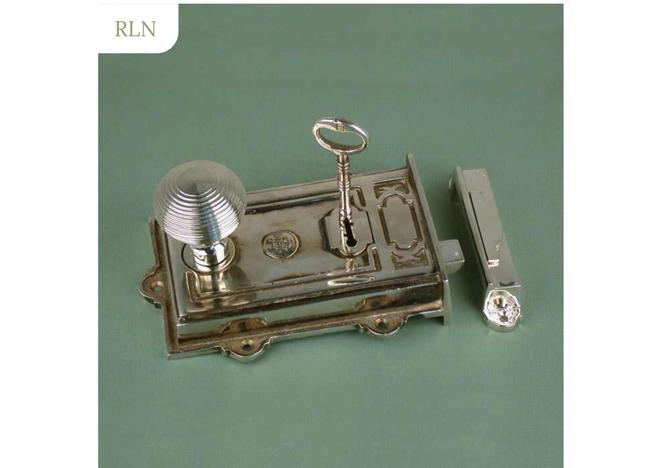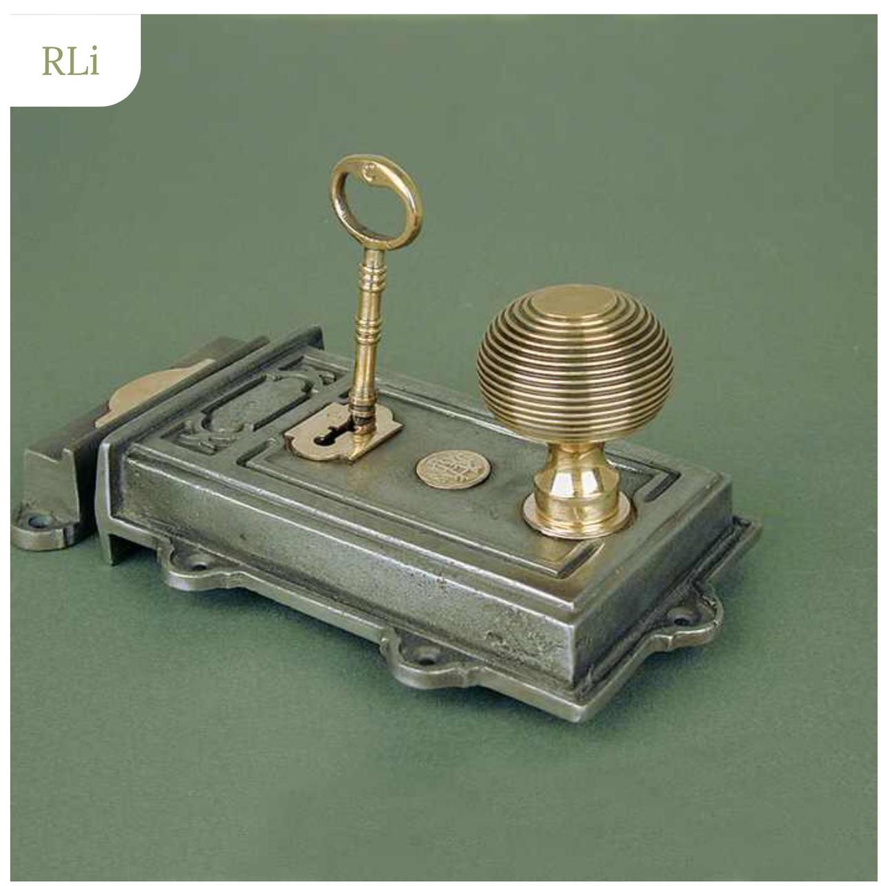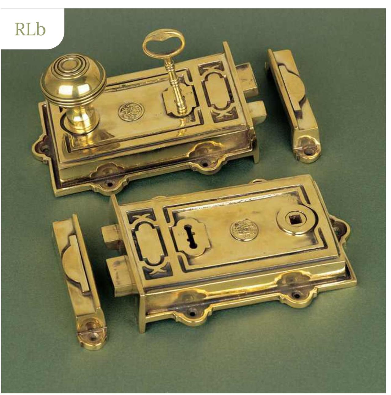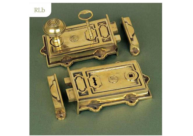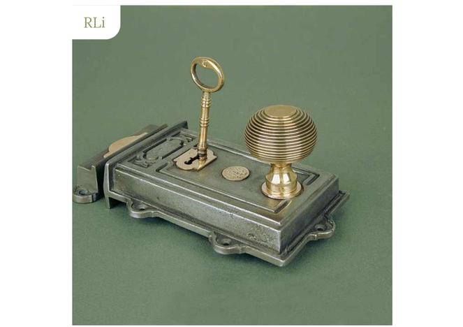 Our Davenport, single lever, dual handed rim lock is available in a choice of three ‘hand aged’ finishes – solid brass, cast iron with brass fittings, or nickel plated brass . Both the external design and internal locking mechanism are based on original period locks. Each lock is hand finished and is supplied with fixing screws and two solid brass keys. A simple variation on the key plate allows us to offer you up to six different keys.