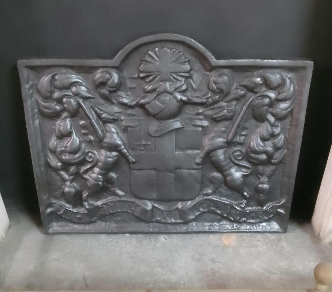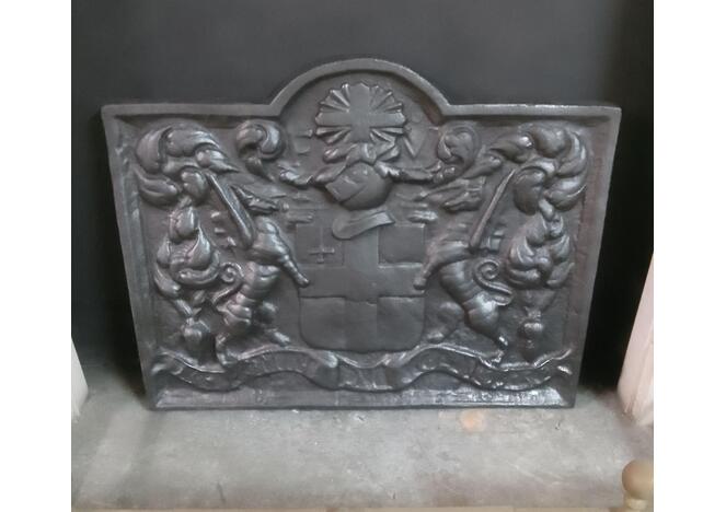 FB0201 A truly elegant ornate fire back. With Griffins and Coat of Arms.