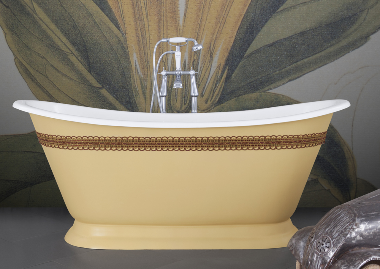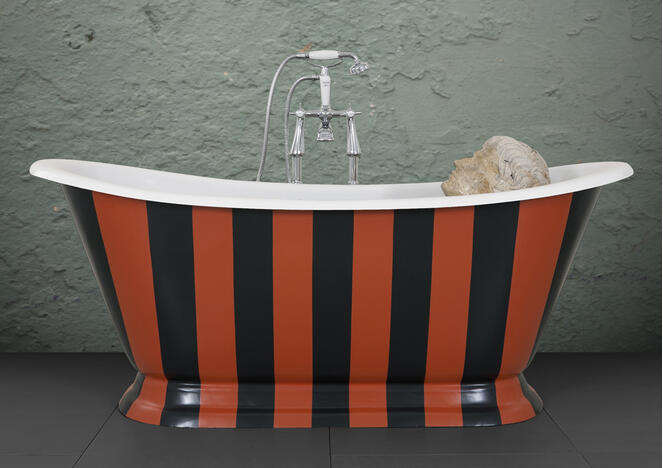 Perhaps the very epitome of the image conjured up when you say ‘freestanding’ or ‘roll top’ baths. With it's alluring shape, deep sides and classical proportions this double slipper bath possesses both a complete roll and rests on a gently sloping plinth. One of the most popular baths Hurlingham has created, this gorgeous and incredibly versatile bath can be bespoke decorated to your tastes, be that painted, gilded, wrapped in fabric or leather.