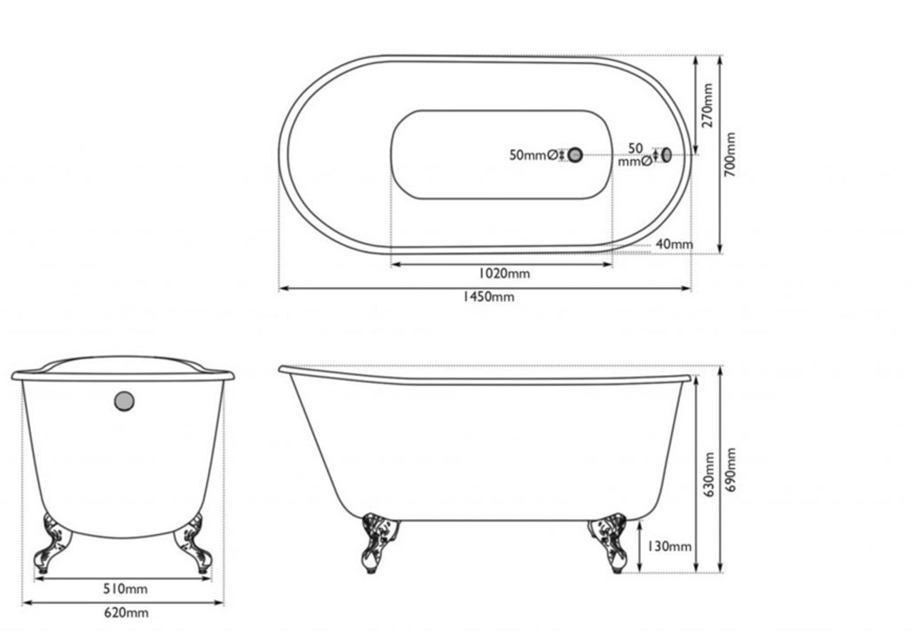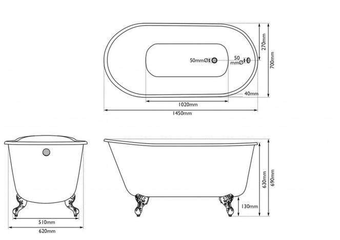 - Lille Single Slipper Cast Iron Bath Without Tap Holes