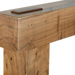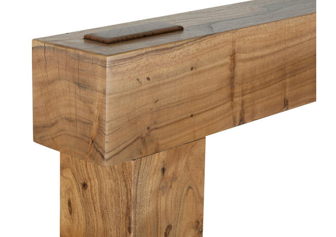 The classical plain finish is complemented by the unique design that sees the shelf cross in front of the legs and extend beyond their width.