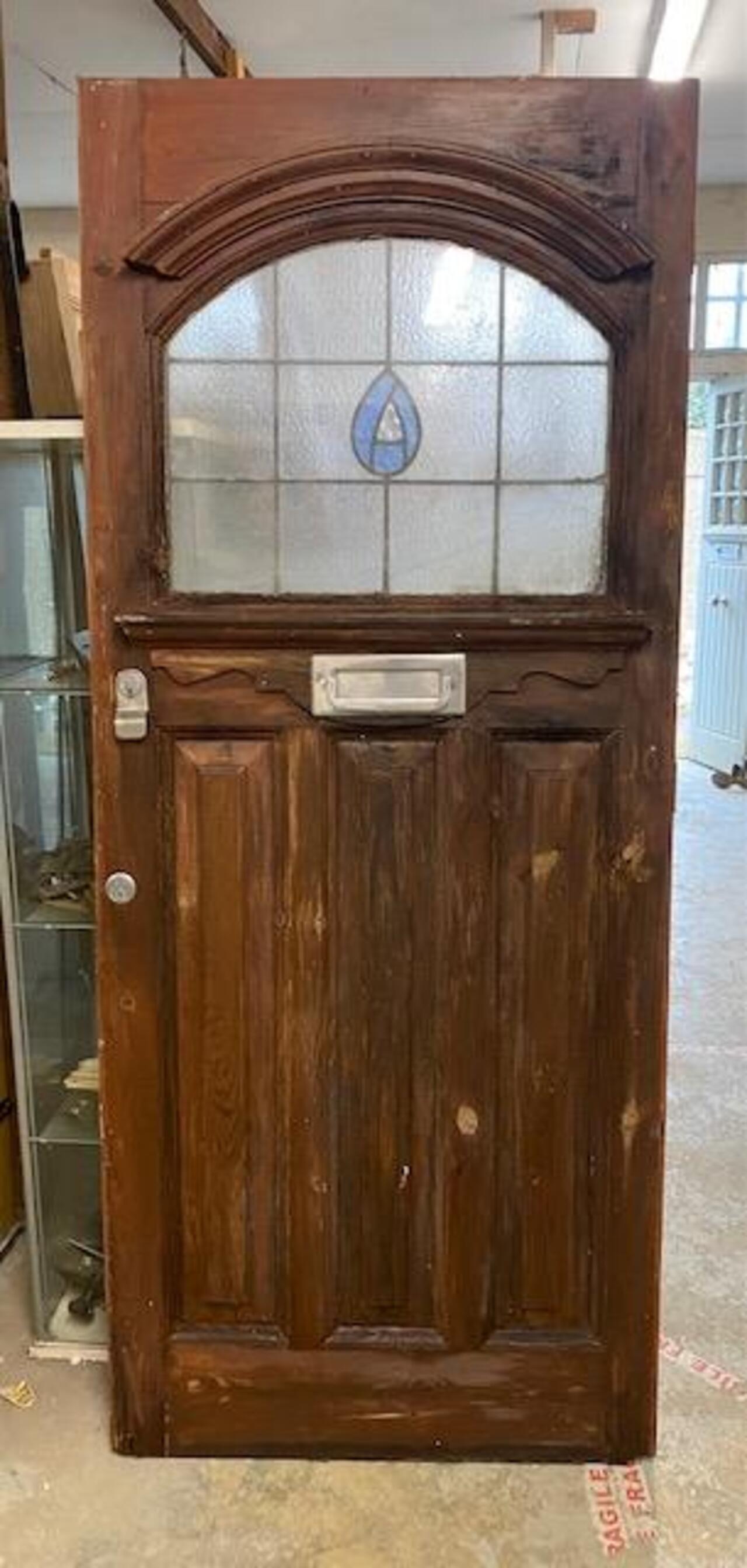 An original period front door with stained glass 208cm High X 87cm Wide