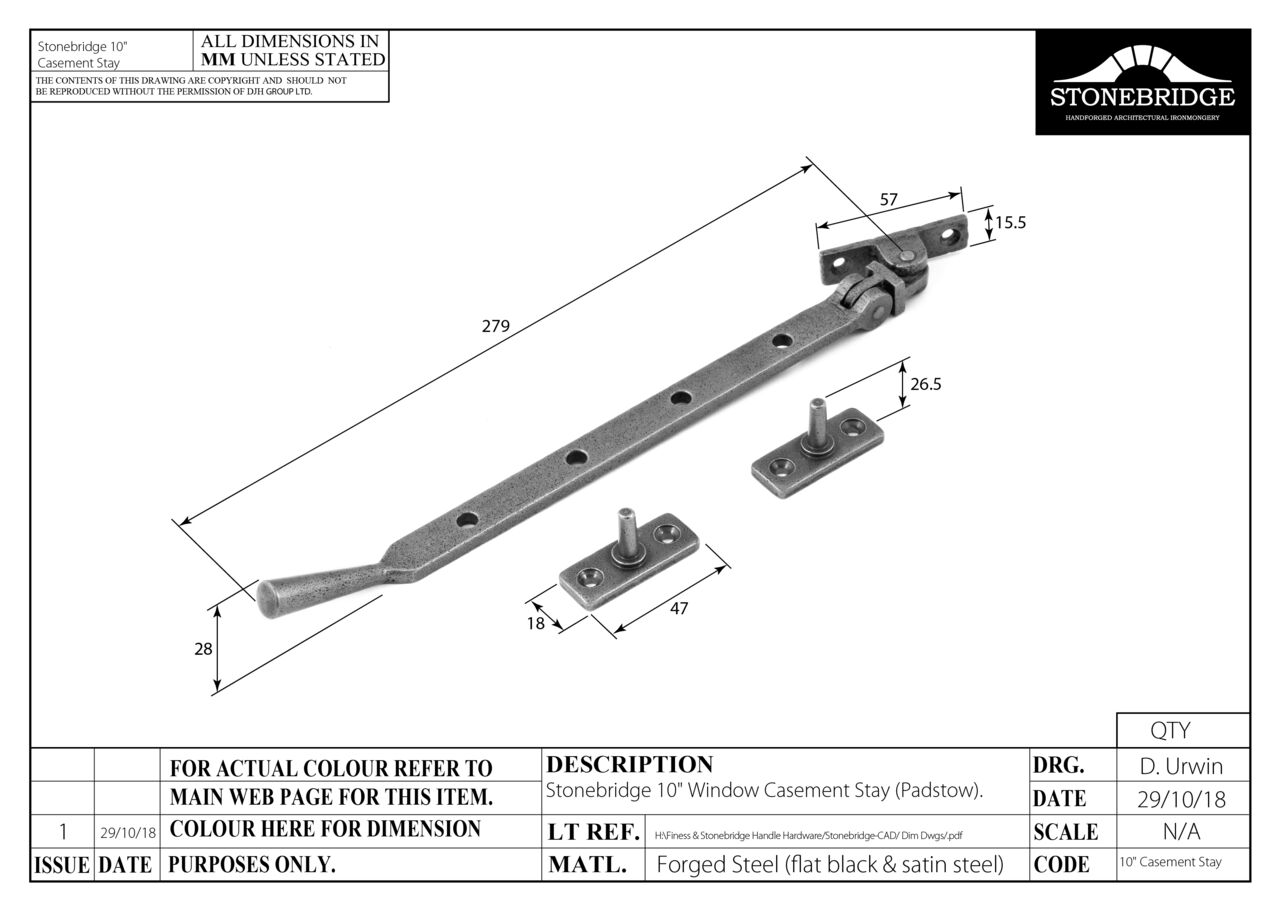 Padstow Casement Stay 10"/250mm Armor Coat Flat Black £28.99