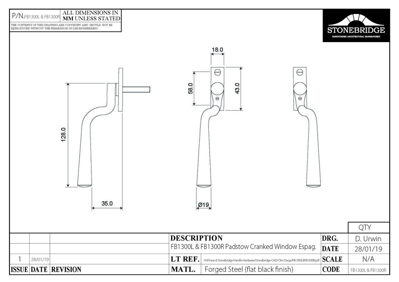 Padstow Cranked Espagnolette Window Handle Locking L/H Armor Coat Flat Black £31.90