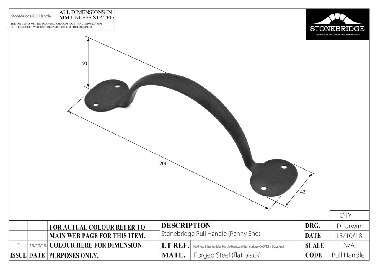 Penny End Pull Handle 8"/200mm Armor Coat Flat Black £23.30