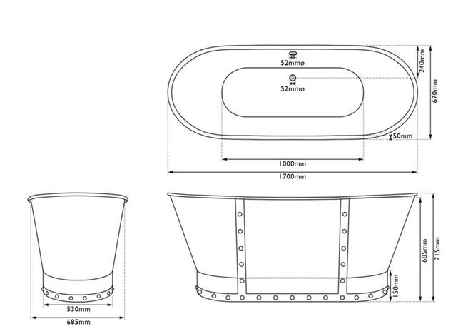 - Sudbury Steel Skirted Cast Iron Bath Without Tap Holes