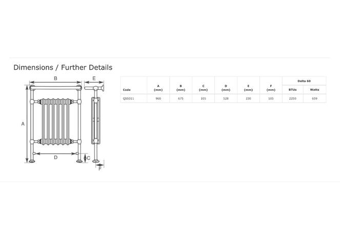 - The radiators size and output is shown below